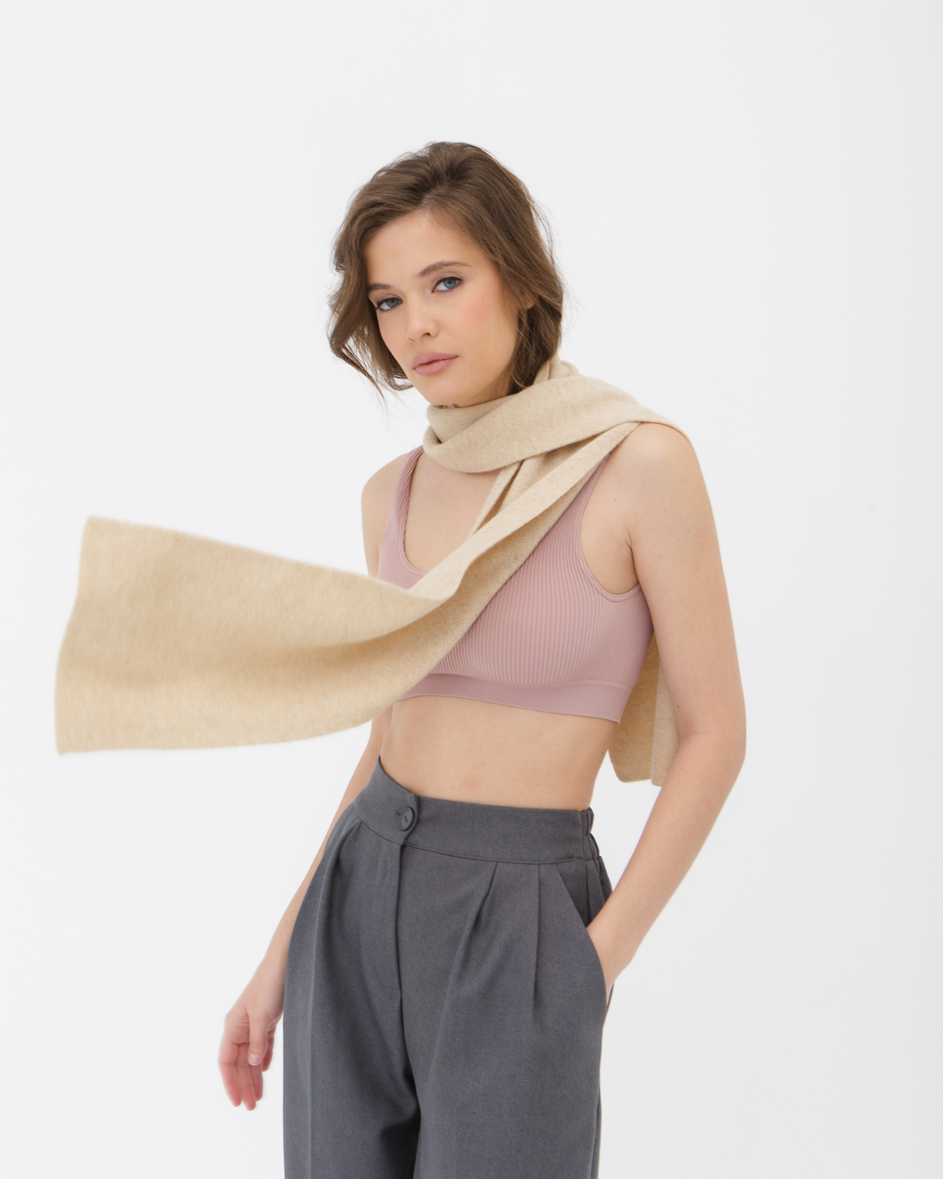 Шарф из кашемира 03034 бежевый