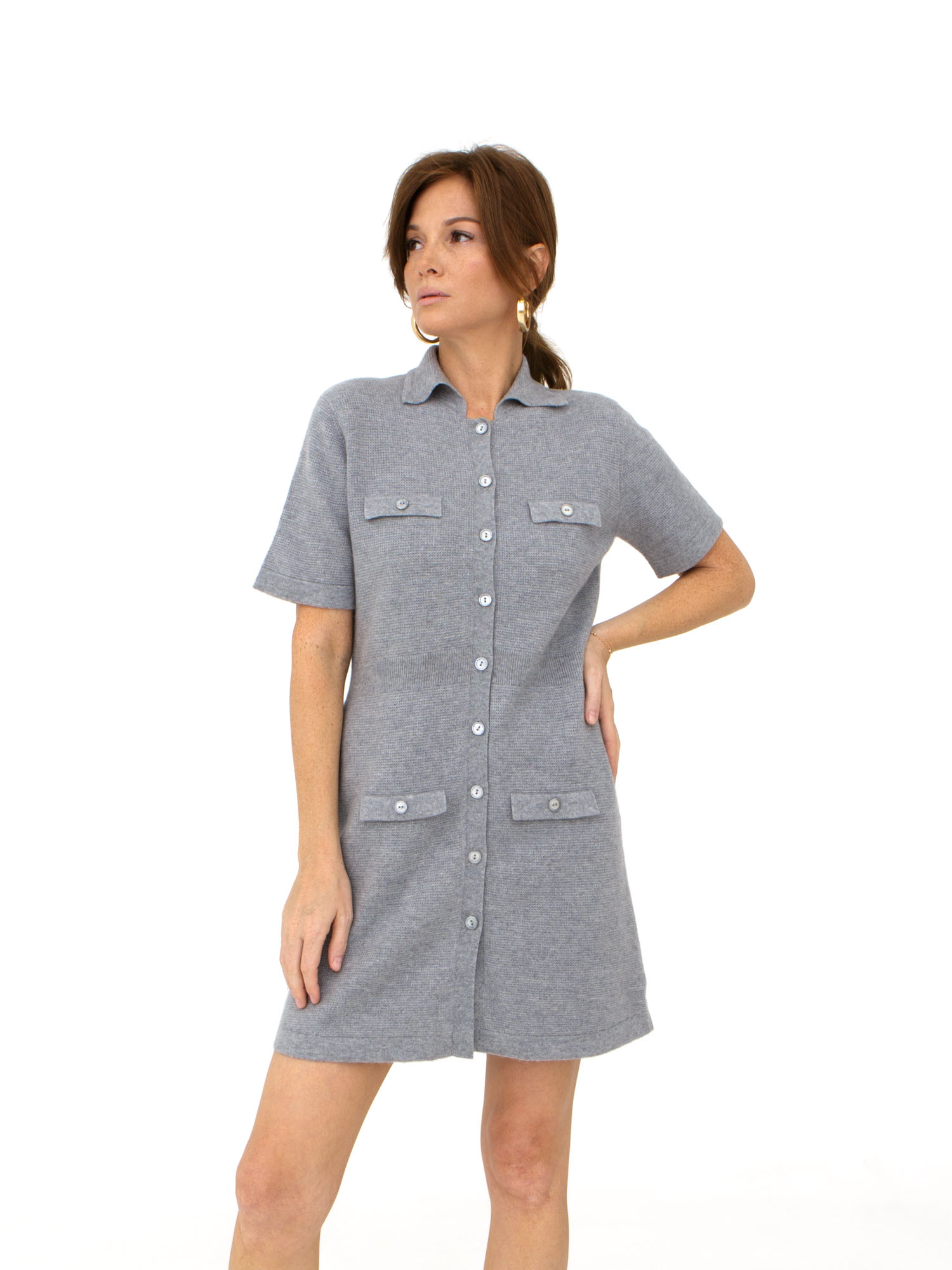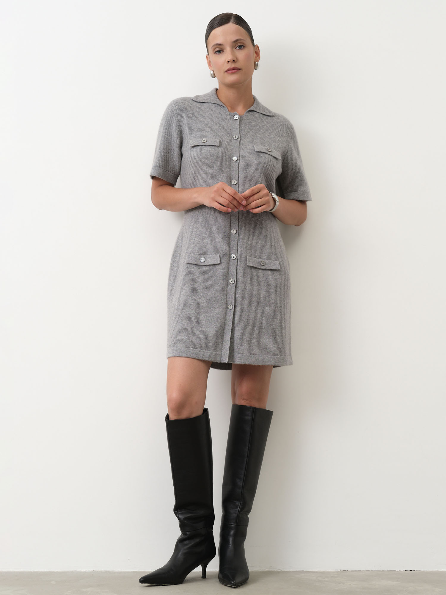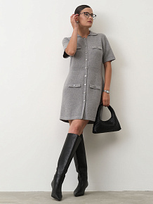 Элегантное платье из мягкого кашемира выполнено в утонченном серо-голубом оттенке. Лаконичный дизайн с акцентом на чистые линии делает модель универсальной для повседневных и более собранных образов.