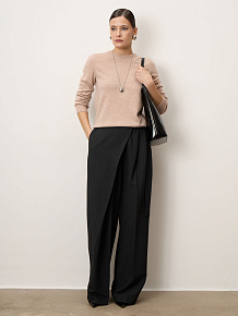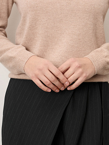 Лаконичный силуэт с круглой горловиной и аккуратной гладкой вязкой. Минималистичный дизайн подчеркивает благородную текстуру кашемира. Манжеты, низ изделия и горловина выполнены с аккуратной эластичной отделкой, что помогает сохранять форму и придаёт модели аккуратный вид.