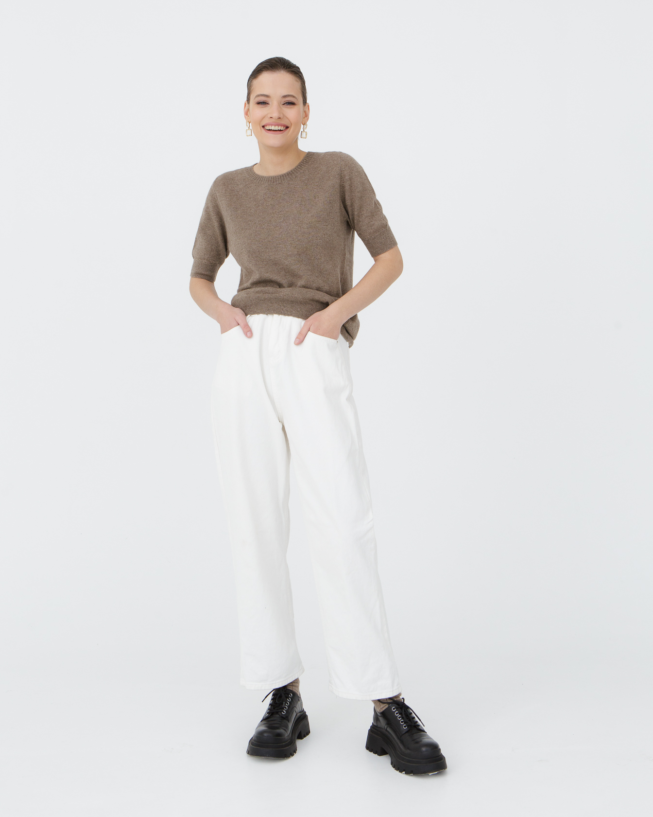 Прямой силуэт обеспечивает удобную посадку и свободу движений. Лёгкий и мягкий кашемир приятно прилегает к телу и создаёт ощущение уюта и комфорта.