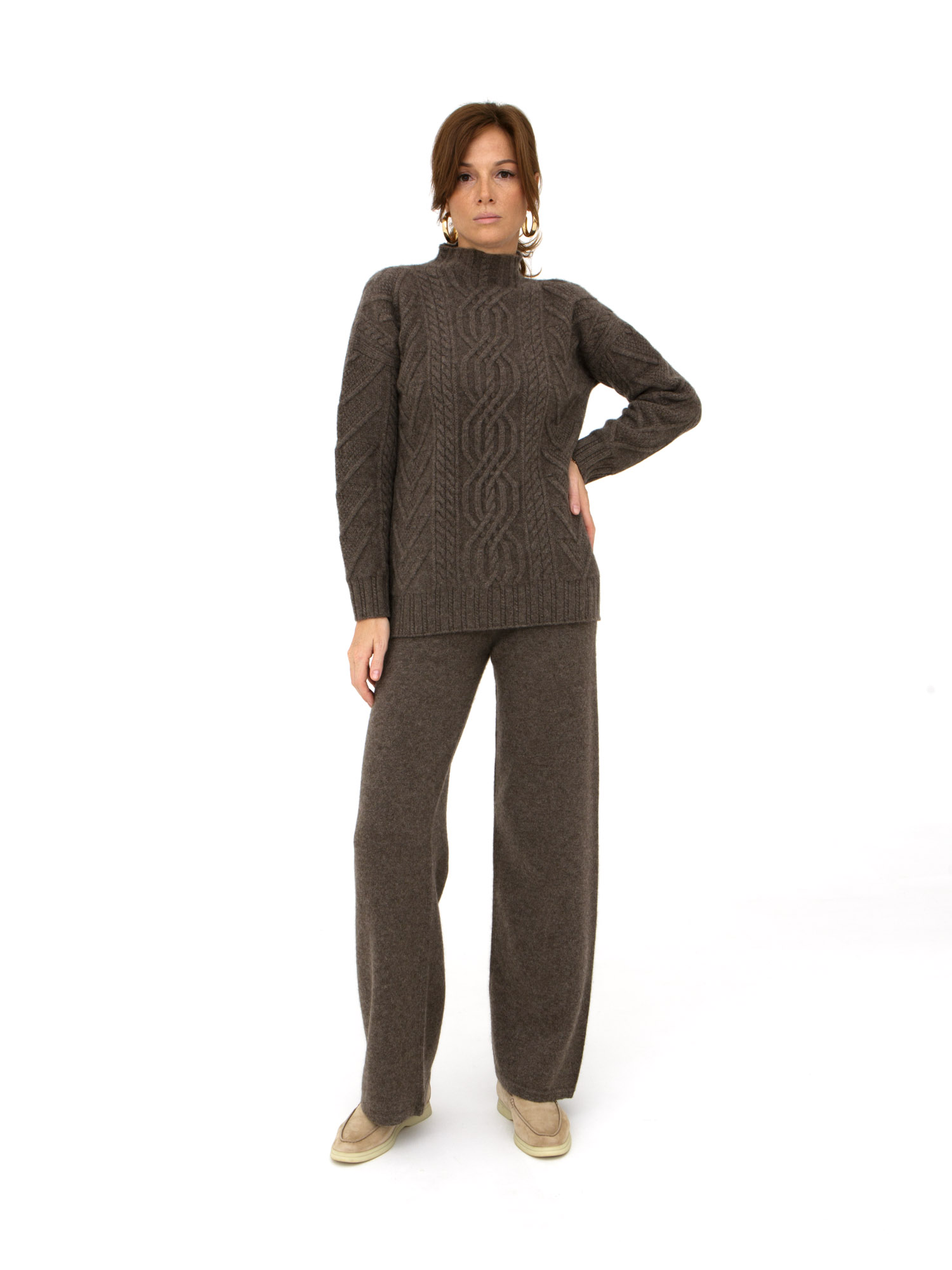 Брюки отлично сочетаются с джемперами, водолазками и кардиганами из кашемира или пуха яка. Подходят для создания уютных повседневных образов. Гармонично смотрятся с кедами, лоферами или ботинками.