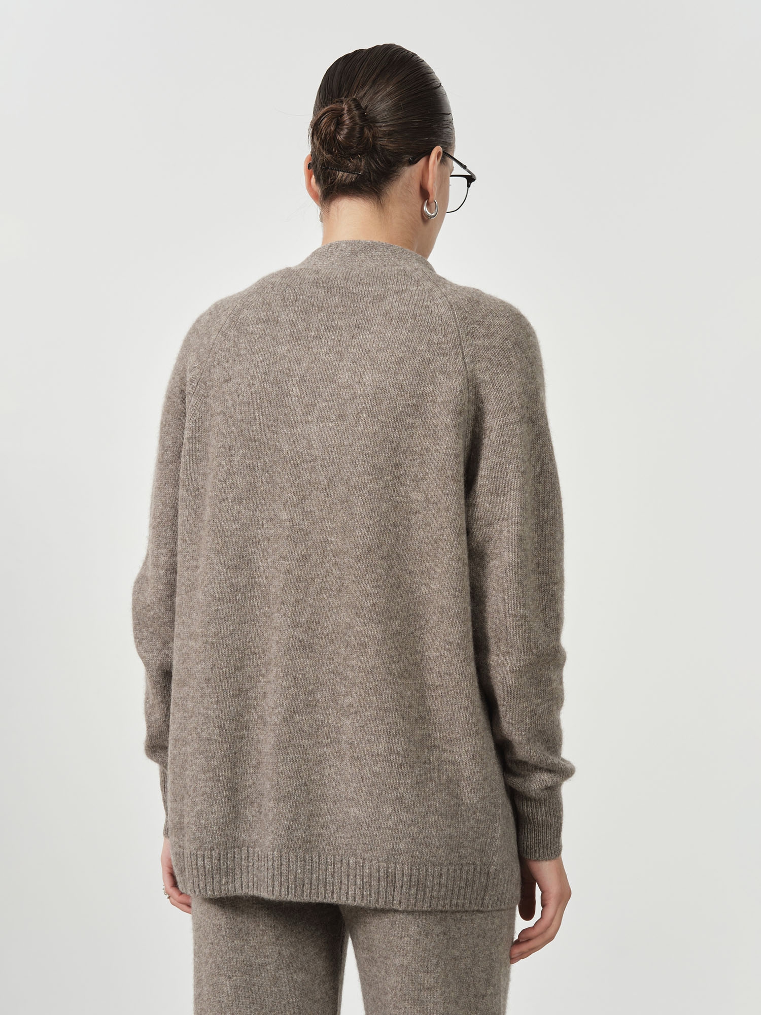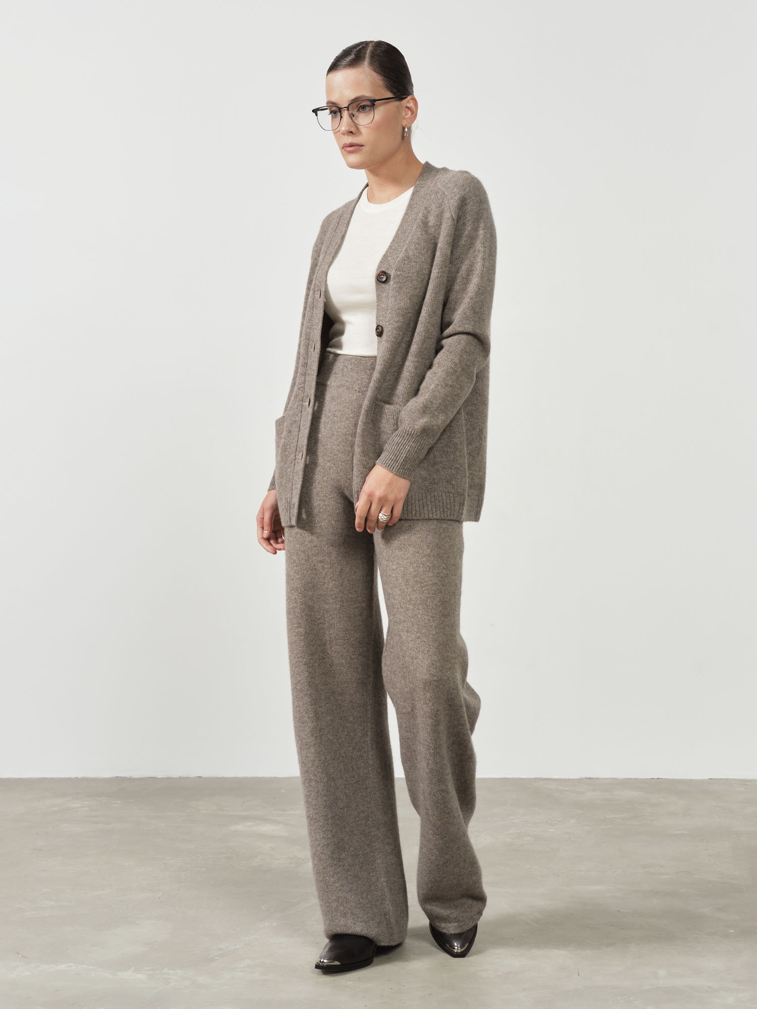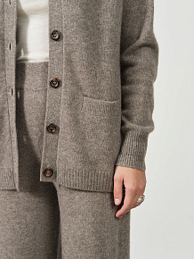 Природный рыжеватый оттенок верблюжьей шерсти придает изделию благородную эстетику и подчеркивает его натуральное происхождение. Особенность шерсти верблюжонка в том, что она в два раза теплее овечьей при вдвое меньшем весе, что делает кардиган идеальным выбором для холодного времени года без утяжеления образа.